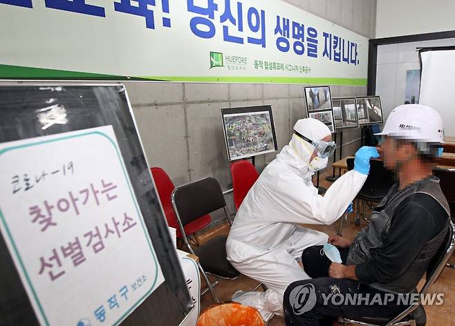 (서울=연합뉴스) 서울 동작구가 30일 관내 근로자 수 50인 이상 건설공사장을 대상으로 찾아가는 선별진료소를 추가 운영했다고 밝혔다.