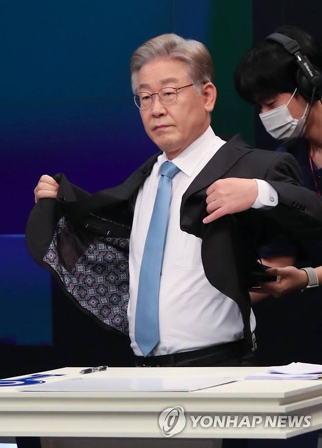 (서울=연합뉴스) 더불어민주당 대권주자인 이재명 경기지사가 30일 서울 중구 TV조선에서 방송토론을 준비하고 있다. 2021.9.30 [국회사진기자단]