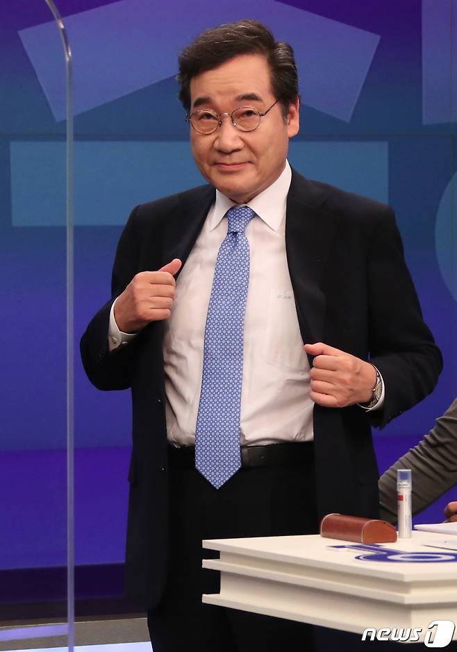 (서울=뉴스1) 국회사진취재단 = 이낙연 더불어민주당 대선 예비후보가 30일 서울 중구 TV조선에서 열린 방송토론회를 준비하고 있다. 2021.9.30/뉴스1