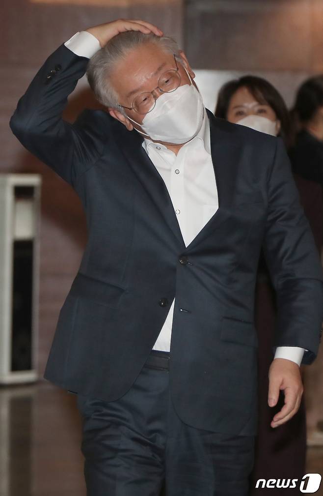 (서울=뉴스1) 국회사진취재단 = 이재명 더불어민주당 대선 예비후보가 30일 서울 중구 TV조선에서 열린 방송토론회에 참석하고 있다. 2021.9.30/뉴스1