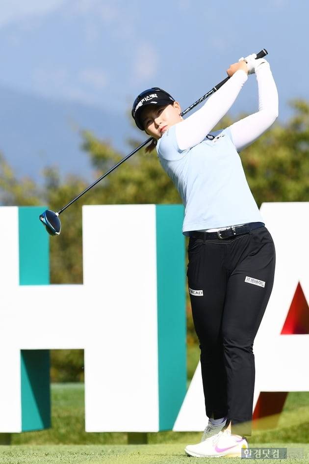 KLPGA(한국여자프로골프)투어 '하나금융그룹 챔피언십'(총상금 15억 원) 1라운드 경기가 30일 경기도 포천시 경기도 포천 아도니스 컨트리클럽(파71·6480야드)에서 열렸다. 대회에 출전한 임희정이 1번 홀에서 티샷하고 있다.