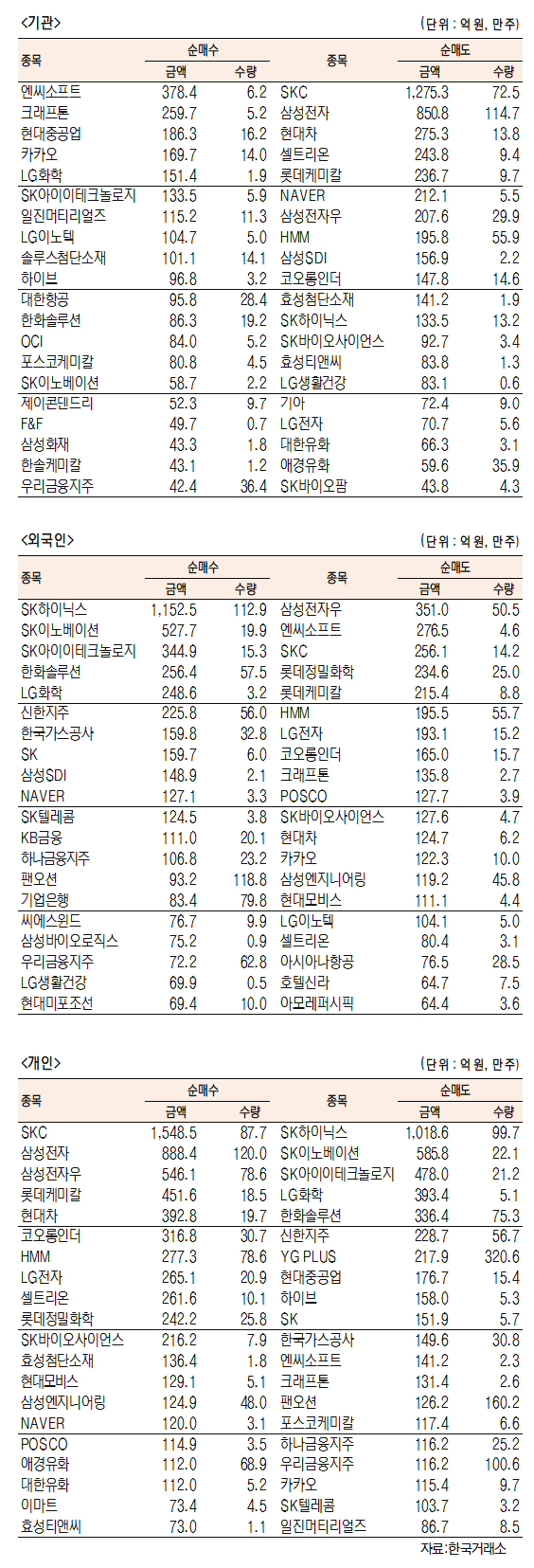 - [표]코스닥 기관·외국인·개인 순매수·도 상위종목(9월 30일-최종치)