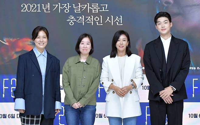 | ▲ 'F20' 홍은미 감독(왼쪽에서 두 번째)과 김정영, 김강민, 장영남 배우가 30일 오후 비대면으로 열린 영화 < F20(에프이공) > 온라인 기자간담회에서 포즈를 취하고 있다. |