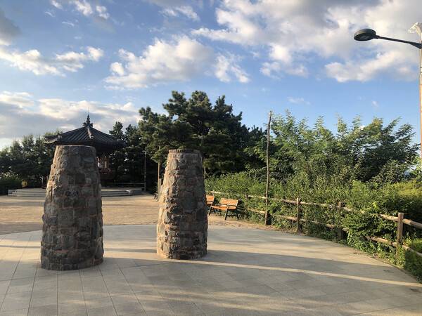 둘레길은 잘 정비돼 있고 안내표지판도 곳곳에 자리 잡아 "어서 오세요"라는 인사를 건넨다. 추석 전이라 그런지 둘레길을 찾는 사람은 별로 눈에 띄지 않는다. 가끔 한두 명이 나보다는 훨씬 빠른 속도로 길을 재촉한다. 봉산을 조금 더 오르니 쉬어갈 수 있는 정자, 벤치, 운동기구들이 보인다. 코로나19 탓인지 북적거릴법한 정자도 고요하기만 하다.