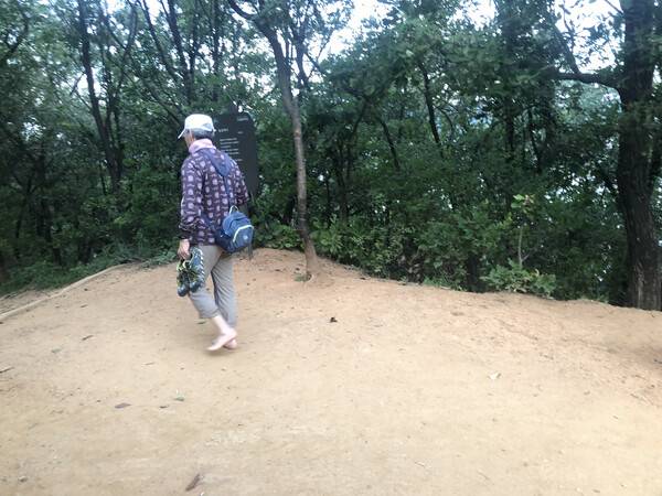 ▲ 봉산에서 만난 어르신. 맨발로 봉산을 걷고 있다.