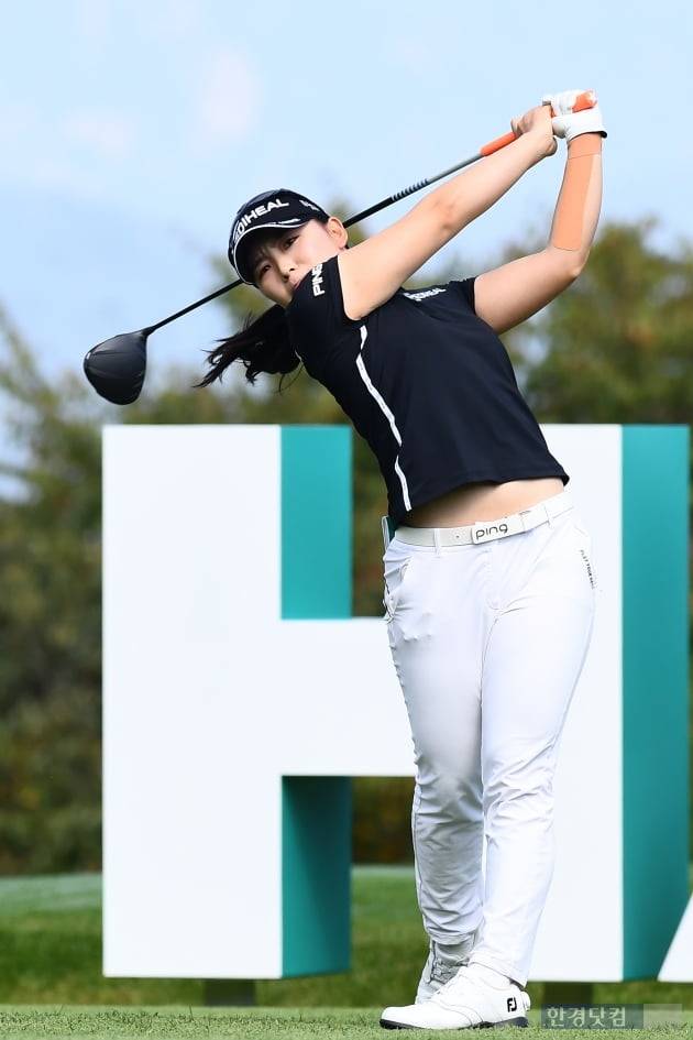 KLPGA(한국여자프로골프)투어 '하나금융그룹 챔피언십'(총상금 15억 원) 1라운드 경기가 30일 경기도 포천시 경기도 포천 아도니스 컨트리클럽(파71·6480야드)에서 열렸다. 대회에 출전한 이다연이 1번 홀에서 티샷하고 있다.