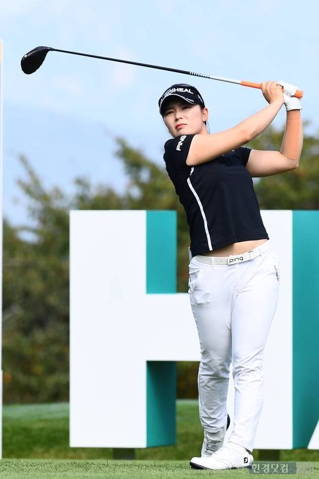 KLPGA(한국여자프로골프)투어 '하나금융그룹 챔피언십'(총상금 15억 원) 1라운드 경기가 30일 경기도 포천시 경기도 포천 아도니스 컨트리클럽(파71·6480야드)에서 열렸다. 대회에 출전한 이다연이 1번 홀에서 티샷하고 있다.