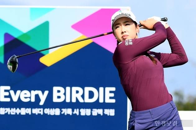 KLPGA(한국여자프로골프)투어 '하나금융그룹 챔피언십'(총상금 15억 원) 1라운드 경기가 30일 경기도 포천시 경기도 포천 아도니스 컨트리클럽(파71·6480야드)에서 열렸다. 대회에 출전한 노예림이 1번 홀에서 티샷하고 있다.