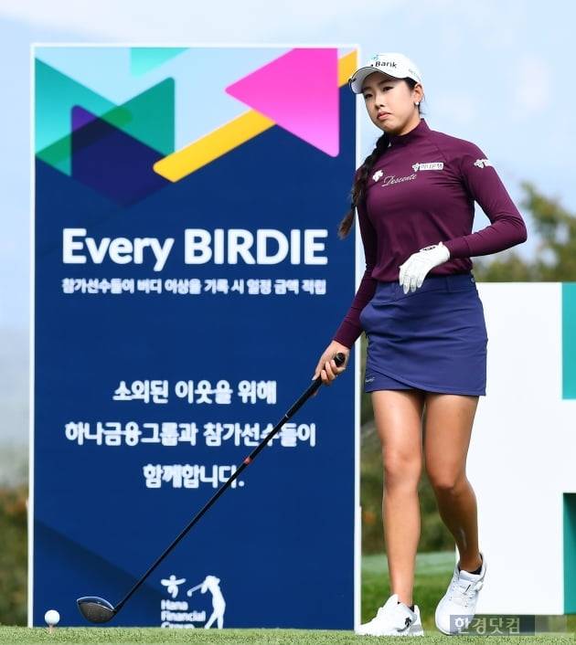 KLPGA(한국여자프로골프)투어 '하나금융그룹 챔피언십'(총상금 15억 원) 1라운드 경기가 30일 경기도 포천시 경기도 포천 아도니스 컨트리클럽(파71·6480야드)에서 열렸다. 대회에 출전한 노예림이 1번 홀에서 티샷하고 있다.