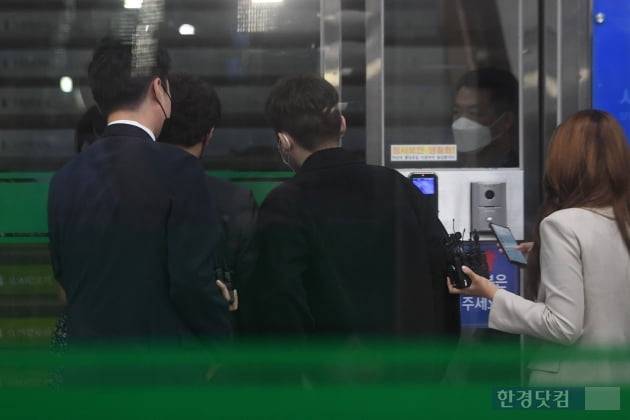 무면허 운전과 음주측정 거부·경찰관 폭행 등 혐의로 입건된 장제원 의원의 아들 장용준(21·예명 노엘)이 30일 서울 서초경찰서에 출석하고 있다.