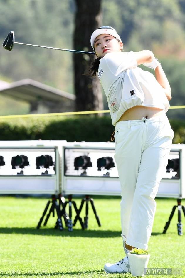 KLPGA(한국여자프로골프)투어 '하나금융그룹 챔피언십'(총상금 15억 원) 1라운드 경기가 30일 경기도 포천시 경기도 포천 아도니스 컨트리클럽(파71·6480야드)에서 열렸다. 대회에 출전한 노승희가 10번 홀에서 티샷하고 있다.