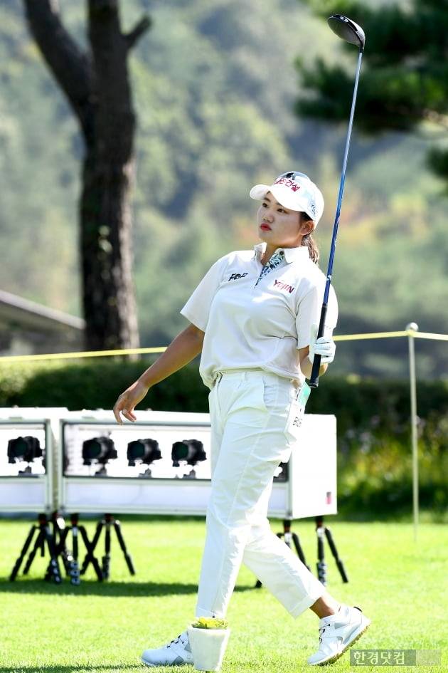 KLPGA(한국여자프로골프)투어 '하나금융그룹 챔피언십'(총상금 15억 원) 1라운드 경기가 30일 경기도 포천시 경기도 포천 아도니스 컨트리클럽(파71·6480야드)에서 열렸다. 대회에 출전한 노승희가 10번 홀에서 티샷하고 있다.