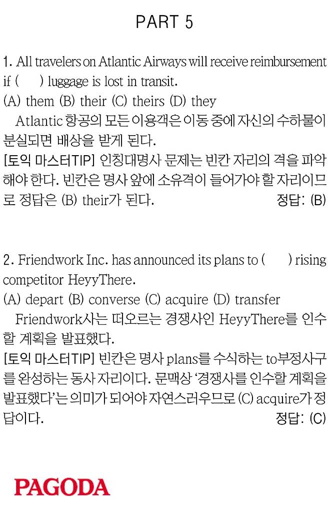 [파고다 강남 스타토익 RC유나신] PART 5