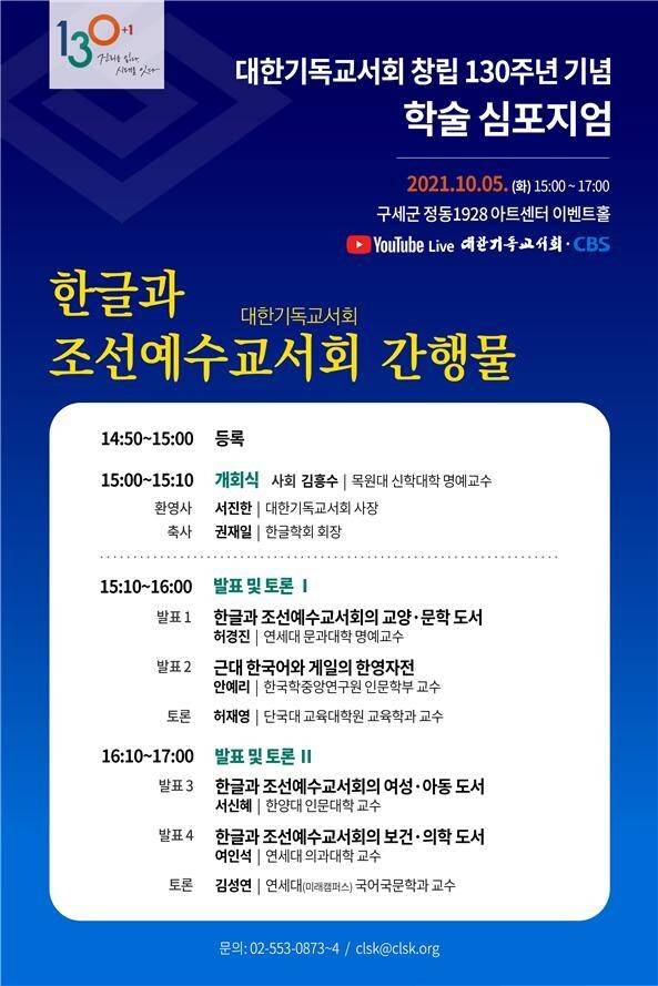 대한기독교서회는 지난해부터 코로나19 사태로 인해 행사를 미뤄오다가 오는 10월5일 서울 중구 구세군 정동1928 아트센터에서 130돌 기념 학술대회를 열기로 했다. 학술대회 주제는 ‘한글과 조선예수교서회 간행물’이다. 구한말과 일제강점기 당시 기독교적 가치관을 담은 종교서적은 물론 각종 교과서와 교양서, 사전류 등 다양한 분야에서 민초들 사이에 한글이 정착되도록 기여한 점을 조명하기 위함이다.