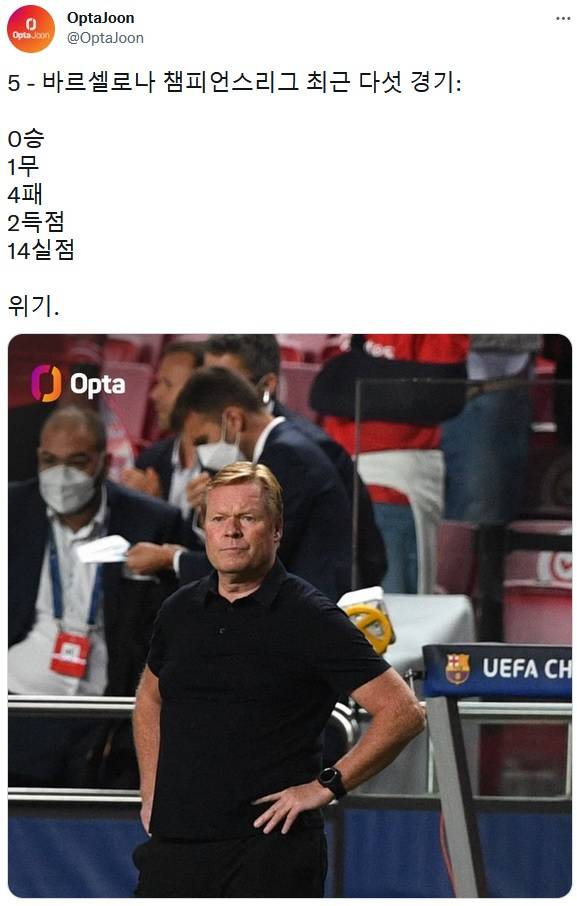 바르사가 챔피언스 리그에서 연달아 치욕적인 결과를 받아들여야 했다. 2021/22 시즌 챔피언스 리그 1, 2차전에서 바이에른과 벤피카를 상대로 2경기 연속 0-3 대패를 당한 것. 바르사가 시즌 개막 기준 유럽 대항전에서 2경기 연속 골을 넣지 못한 건 이번이 처음 있는 일이다.