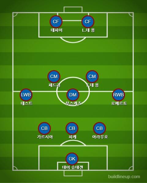 두 경기 모두 3-1-4-2 포메이션을 가동했고, 바이에른전에 선발 출전했다가 부상을 당한 조르디 알바 대신 세르지뇨 데스트가 왼쪽 윙백으로 나선 걸 제외하면 선발 라인업도 동일했다.
