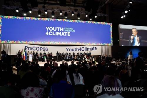 epa09497306 A handout photo made available by the Chigi Palace press office shows Italian Prime Minister Mario Draghi attending the third day of the forum 'Youth4climate: driving ambition' in Milan, Italy, 30 September 2021.