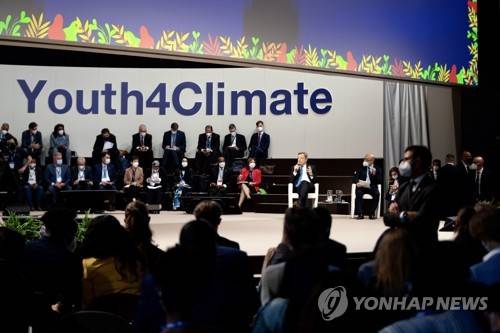 epa09497312 A handout photo made available by the Chigi Palace press office of the third day of the forum 'Youth4climate: driving ambition' in Milan, Italy, 30 September 2021.
