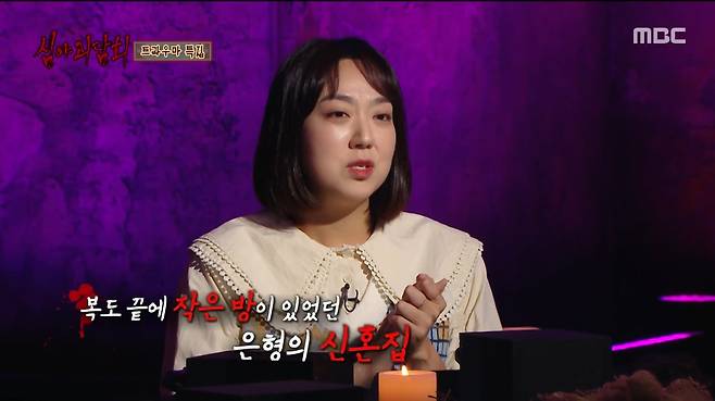 이날 이은형은 직접 체험한 신혼집 괴담을 공개했다. 과거 복도 끝에 있는 신혼집에 살았다는 그는 짐만 넣고 창고처럼 쓰던 방이 있다고 설명했다.