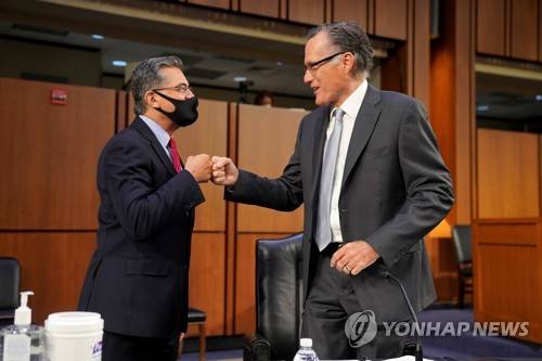 epa09497392 Secretary of Health and Human Services Xavier Becerra (L) fist bumps Sen. Mitt Romney (R-Utah) before a Senate Health, Education, Labor, and Pensions Committee hearing to discuss reopening schools during Covid-19 on Capitol Hill in Washington, DC, USA, 30 September 2021. EPA/Greg Nash / POOL
