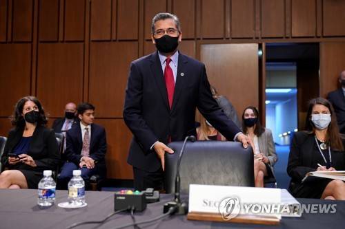 epa09497394 Secretary of Health and Human Services Xavier Becerra arrives for a Senate Health, Education, Labor, and Pensions Committee hearing to discuss reopening schools during Covid-19 on Capitol Hill in Washington, DC, USA, 30 September 2021. EPA/Greg Nash / POOL