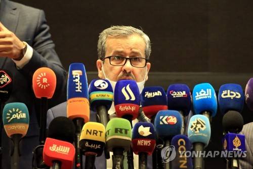 epa09497398 The chairman of the Iraqi Independent High Electoral Commission Judge Jaleel Adnan, speaks during a press conference in Baghdad, Iraq on 30 September 2021. Adnan said during the press conference , that more than 21 million Iraqis, who have registered and received their voter cards, are entitled to vote in the parliamentary elections, and the United Nations has a group of 130 international experts and around 600 support staff will monitoring the elections. EPA/AHMED JALIL