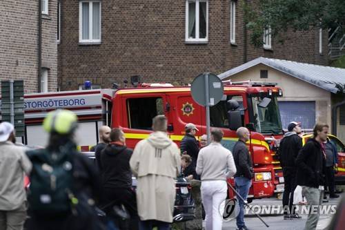 epa09497427 A fire-engine is seen at the area around a health center at Vegatan street that was cordoned off by police, in Gothenburg, Sweden, 30 September 2021. The police received an alarm about the risk of explosion and imminent danger and have asked the rescue service and ambulance to assist in the operation. At present there is no confirmed connection between the threat to the health center and the explosion in the residential building in the neighboring district of Annedal on 28 September. EPA/BJORN LARSSON ROSVALL SWEDEN OUT