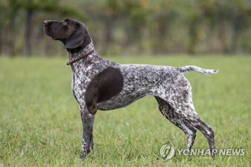 epa09498389 A German Shorthaired Pointer named Somlohegyi Napsugar looks on during the international inspection of shorthaired pointer breeds, one of the side events of the 'One with Nature' World Hunting and Nature Exhibition in Fulopszallas, Hungary, 30 September 2021. EPA/Sandor Ujvari HUNGARY OUT