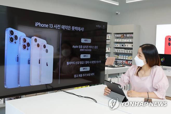 (서울=연합뉴스) 롯데백화점이 애플 공식 리셀러 윌리스, 프리스비 및 넵튠 매장에서 아이폰13 사전예약 진행과 함께 풍성한 혜택을 제공한다고 1일 밝혔다. 이번 아이폰13 사전예약 행사는 오는 7일까지 진행된다.