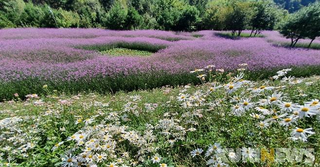 [인제=쿠키뉴스] 한윤식 기자 = 완연한 가을 날씨를 보인 지난 30일 강원 인제군 북면 용대마을에 조성된 꽃밭에 13만 그루의 버들마편초가 만개했다.