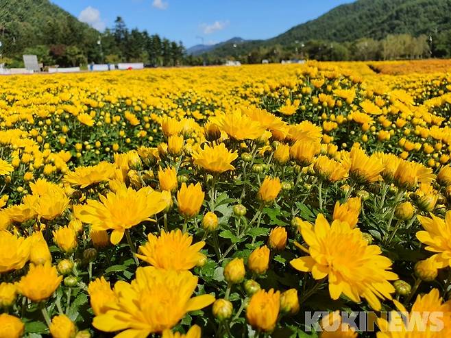 [인제=쿠키뉴스] 한윤식 기자 = 완연한 가을 날씨를 보인 지난 30일 강원 인제군 북면 용대마을에 조성된 꽃밭에 1000만 송이 국화가 만개해 그윽한 향기를 가득 퍼트리고 있다.