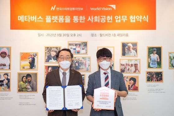 국제구호개발 NGO 월드비전(회장 조명환)이 지난 30일 한국스타트업투자정보와 메타버스를 활용한 사회공헌 분야 발전을 위해 업무 협약을 맺었다.