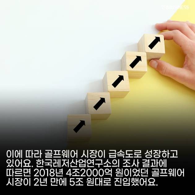 이에 따라 골프웨어 시장이 급속도로 성장하고 있어요. 한국레저산업연구소의 조사 결과에 따르면 2018년 4조2000억 원이었던 골프웨어 시장이 2년 만에 5조 원대로 진입했어요.