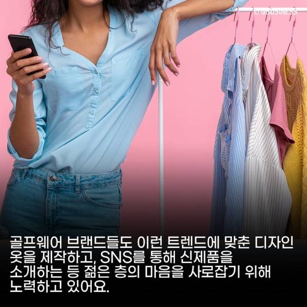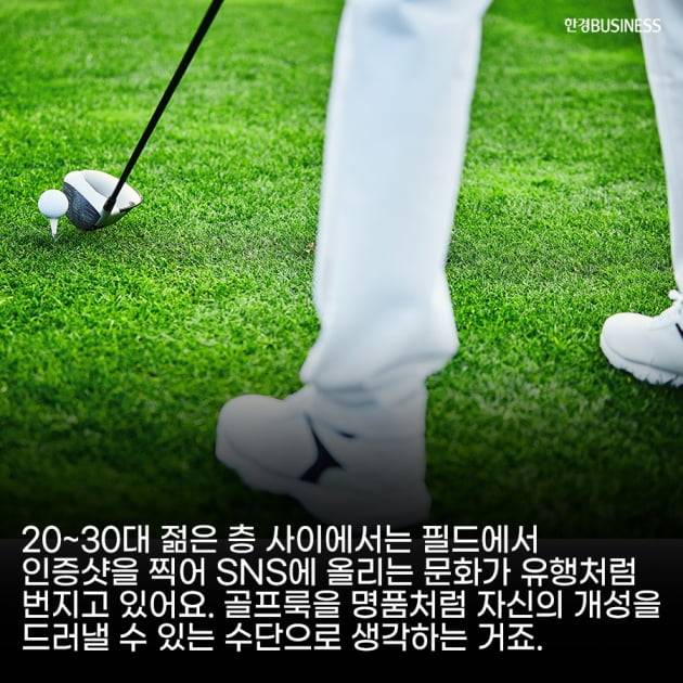 20~30대 젊은 층 사이에서는 필드에서 인증샷을 찍어 SNS에 올리는 문화가 유행처럼 번지고 있어요. 골프룩을 명품처럼 자신의 개성을 드러낼 수 있는 수단으로 생각하는 거죠.