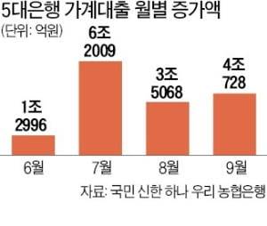 금융당국이 강도 높은 대출 죄기에 들어간 지난 9월 5대 은행의 가계대출 증가 속도가 오히려 빨라진 것으로 나타났다.