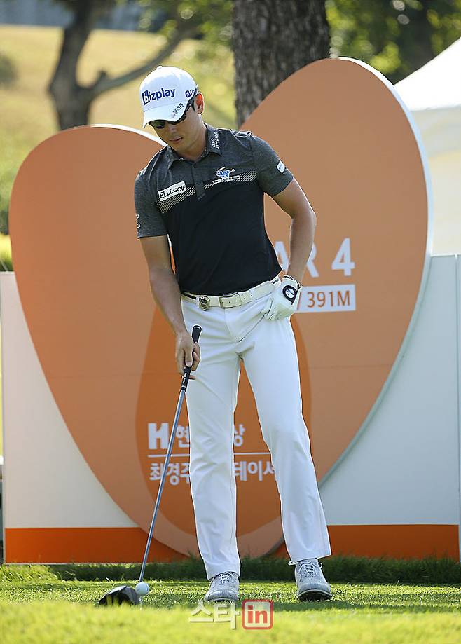 김태훈이 1번홀 경기를 펼치고 있다.