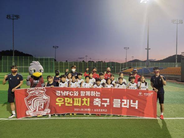 클리닉에 참여한 명서초 김도연 학생은 “경남FC 코치, 선수들과 같이 운동을 해서 좋았다. 많은 걸 배운 것 같다. 지소연 선수처럼 멋진 선수가 되고 싶다”라고 소감을 밝혔다.