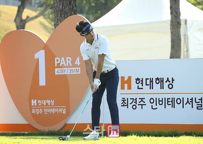 최진호가 1번홀 경기를 펼치고 있다.
