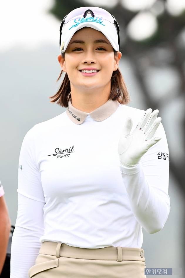 KLPGA(한국여자프로골프)투어 '하나금융그룹 챔피언십'(총상금 15억 원) 2라운드 경기가 1일 경기도 포천 아도니스 컨트리클럽(파71·6480야드)에서 열렸다. 대회에 출전한 박결이 1번 홀에서 티샷을 한 후 이동하고 있다.