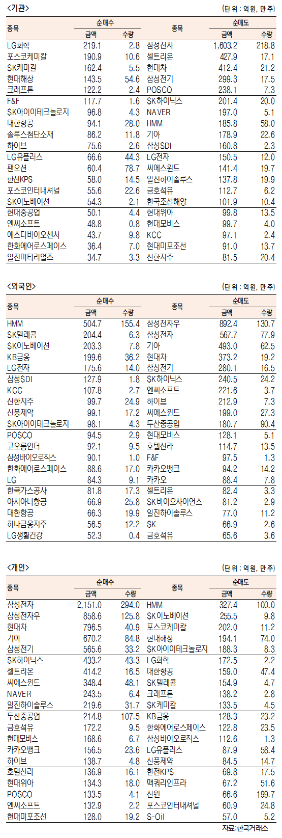 - [표]유가증권 기관·외국인·개인 순매수·도 상위종목(9월 28일-최종치)