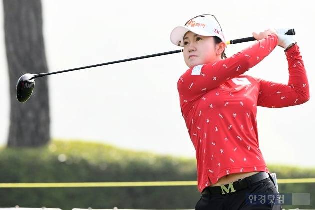 KLPGA(한국여자프로골프)투어 '하나금융그룹 챔피언십'(총상금 15억 원) 2라운드 경기가 1일 경기도 포천 아도니스 컨트리클럽(파71·6480야드)에서 열렸다. 대회에 출전한 이승연이 10번 홀에서 티샷하고 있다.