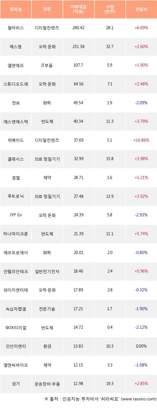 01일, 코스닥 기관 순매수상위에 오락·문화 업종 4종목