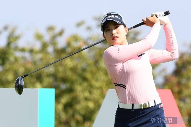 KLPGA(한국여자프로골프)투어 '하나금융그룹 챔피언십'(총상금 15억 원) 2라운드 경기가 1일 경기도 포천 아도니스 컨트리클럽(파71·6480야드)에서 열렸다. 대회에 출전한 안지현이 1번 홀에서 티샷하고 있다.