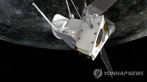 epa09499429 An undated handout picture made available by the European Space Agency (ESA) shows an artist impression of the BepiColombo probe flying by Mercury (issued 01 October 2021). The spacecraft makes nine gravity assist manoeuvres (one of Earth, two of Venus and six of Mercury) before entering orbit around the innermost planet of the Solar System in 2025. The closest approach is at 23:34 UTC on 01 October (01:34 CEST on 02 October) at a distance of 200 km, capturing imagery and science data. BepiColombo is an international collaboration between ESA and the Japan Aerospace Exploration Agency (JAXA). EPA/ESA/ATG MEDIALAB HANDOUT HANDOUT EDITORIAL USE ONLY/NO SALES