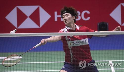 epa09499434 Chen Yu Fei of China in action during her women's singles macht against Mia Blichfeldt of Denmark for the quarterfinal tie between China and Denmark at the BWF 2021 Sudirman Cup Badminton tournament in Vantaa, Finland, 01 October 2021. EPA/MAURI RATILAINEN