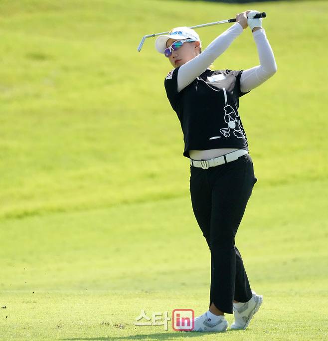 [이데일리 골프in=포천 박태성 기자] 1일 경기 포천시 아도니스CC(파71/6,480야드)에서 한국여자프로골프(KLPGA)투어 스물세 번째 대회인 '하나금융그룹챔피언십'(총상금 15억원,우승상금 2억 7천만 원) 2라운드가 열렸다.정윤지(NH투자증권)가 10번홀 아이언샷을 날리고 있다.