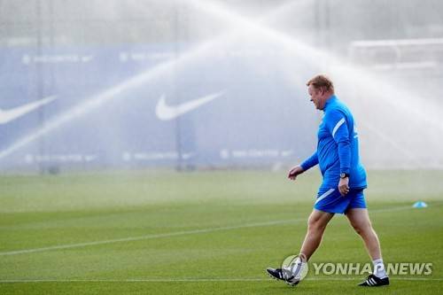 epa09499468 FC Barcelona's head coach Ronald Koeman leads the team's training session at Joan Gamper sport premises in Barcelona, Catalonia, north-eastern Spain, 01 October 2021. FC Barcelona will face Atletico Madrid in a Spanish LaLiga soccer match on 02 October. EPA/ALEJANDRO GARCIA