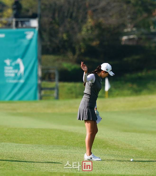 [이데일리 골프in=포천 박태성 기자] 1일 경기 포천시 아도니스CC(파71/6,480야드)에서 한국여자프로골프(KLPGA)투어 스물세 번째 대회인 '하나금융그룹챔피언십'(총상금 15억원,우승상금 2억 7천만 원) 2라운드가 열렸다.노예림(하나금융그룹)이 18번홀 샷을 하기 전 공략을 생각하고 있다.