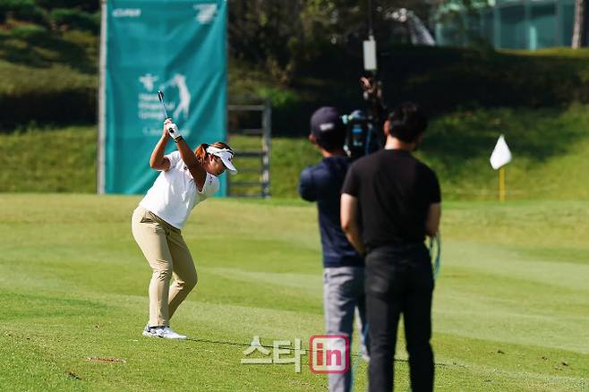 [이데일리 골프in=포천 박태성 기자] 1일 경기 포천시 아도니스CC(파71/6,480야드)에서 한국여자프로골프(KLPGA)투어 스물세 번째 대회인 '하나금융그룹챔피언십'(총상금 15억원,우승상금 2억 7천만 원) 2라운드가 열렸다.유해란(SK네트웍스)이 18번홀 서드샷을 날리고 있다.