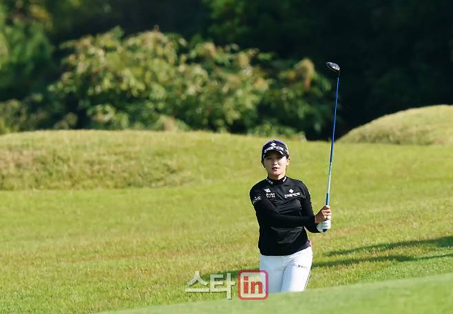 [이데일리 골프in=포천 박태성 기자] 1일 경기 포천시 아도니스CC(파71/6,480야드)에서 한국여자프로골프(KLPGA)투어 스물세 번째 대회인 '하나금융그룹챔피언십'(총상금 15억원,우승상금 2억 7천만 원) 2라운드가 열렸다.박현경(한국토지신탁)이 18번홀 세컨드샷을 날리고 있다.
